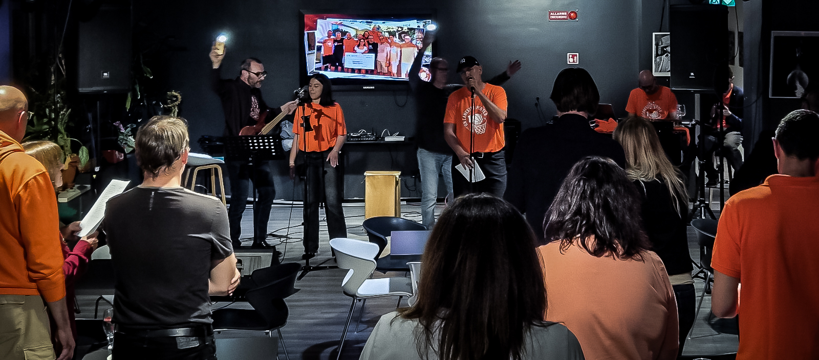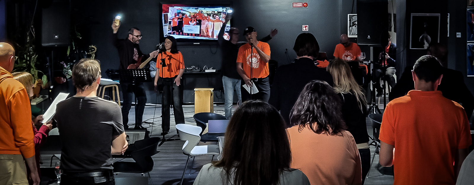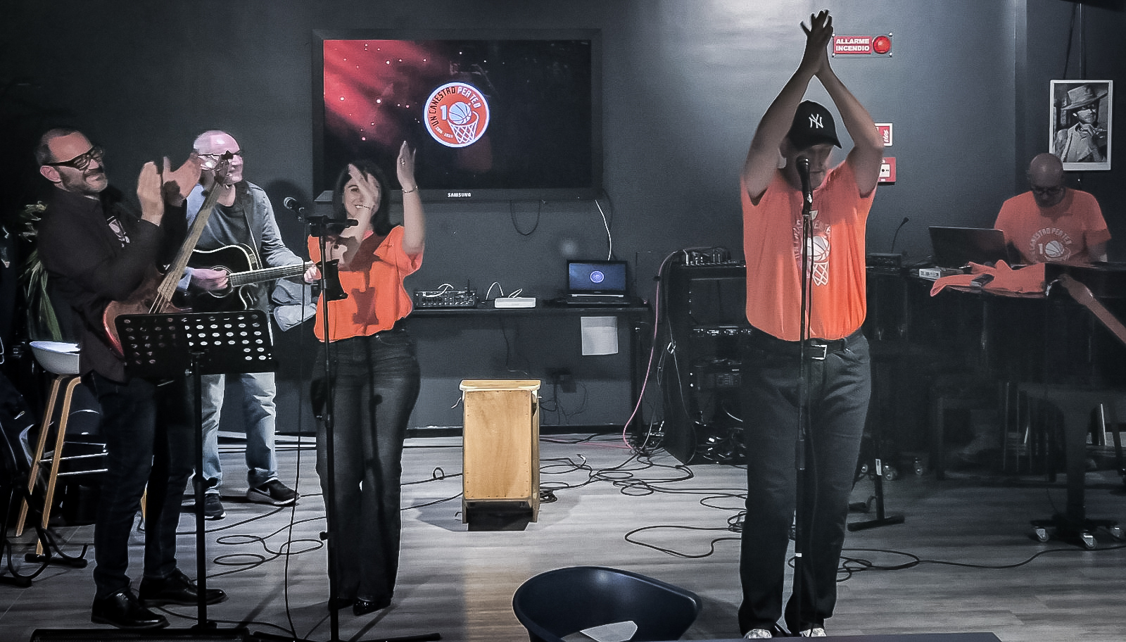 Oltre 150 persone, quattro artisti sul palco, una serata che ha fatto quello che il basket ci ha insegnato a fare: tenere insieme le persone.